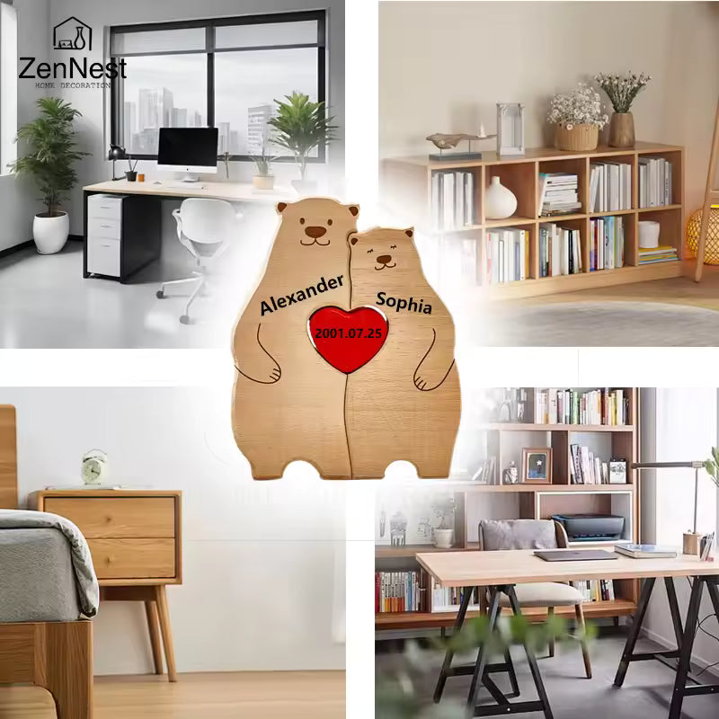 Un orsetto in legno personalizzato, elegante e curato nei dettagli, con incisione dei nomi a scelta: un oggetto unico, ideale come regalo o decorazione, capace di racchiudere un grande significato.